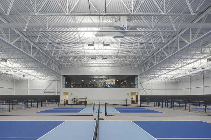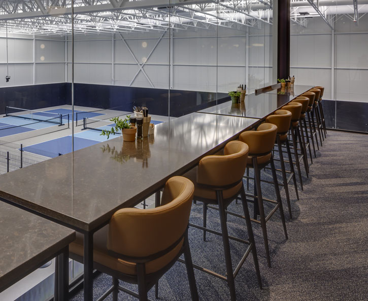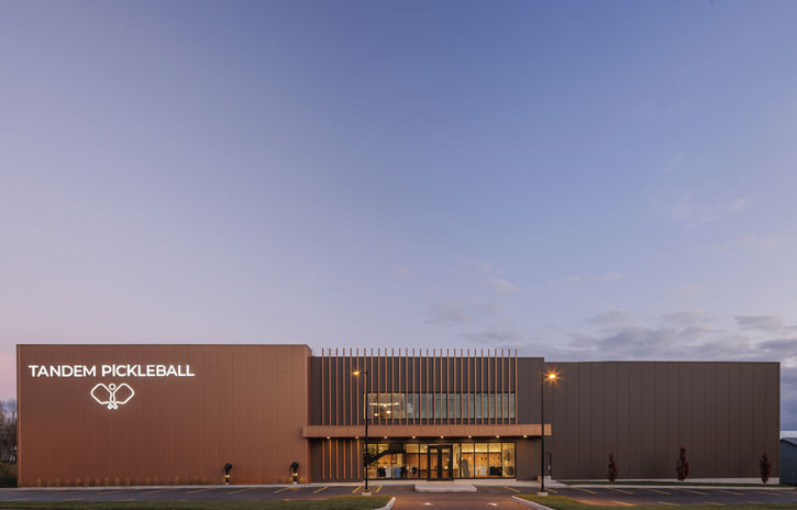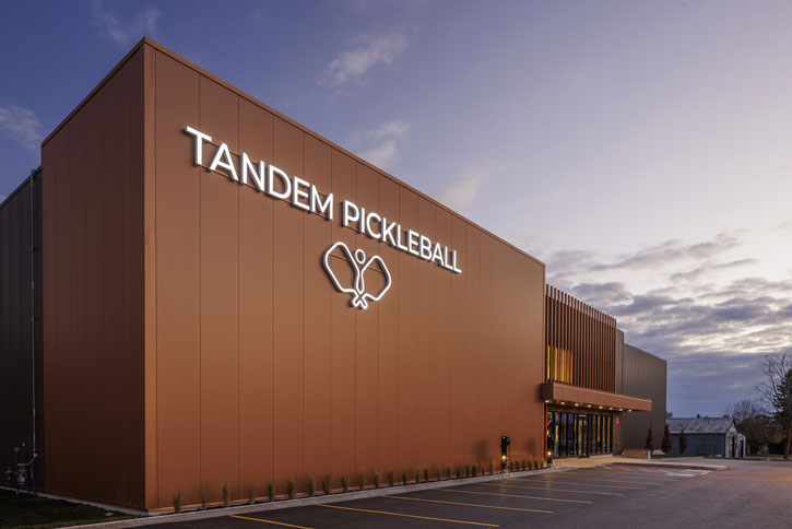 Tandem est un nouveau complexe de pickleball à Sherbrooke. Il compte dix terrains et comporte un bistrot offrant une vue dégagée sur les terrains.